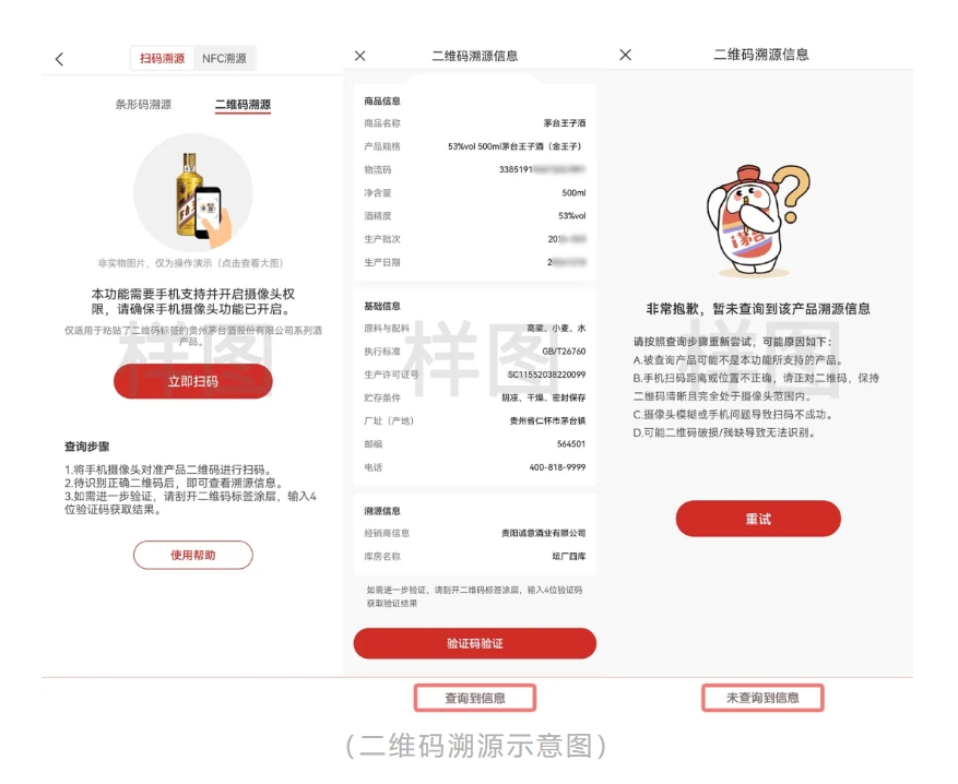 目前i茅臺App針對不同的產(chǎn)品為親們提供了兩種形式的溯源方式: