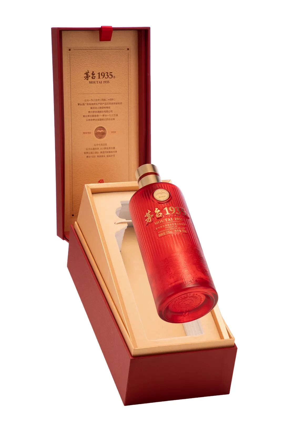 外觀設計上,茅臺1935新品突破傳統(tǒng),采用創(chuàng)新半透材質打造瓶身,彰顯現(xiàn)代審美的大氣靈動,透過瓶身可隱約窺見酒體的醇厚色澤。瓶身選用中國紅與赤水金的色彩搭配,交相輝映,傳遞鴻運相伴的美好寓意,實現(xiàn)了“顏值”與“質感”雙重統(tǒng)一,為消費者品飲場景注入更多儀式感。
