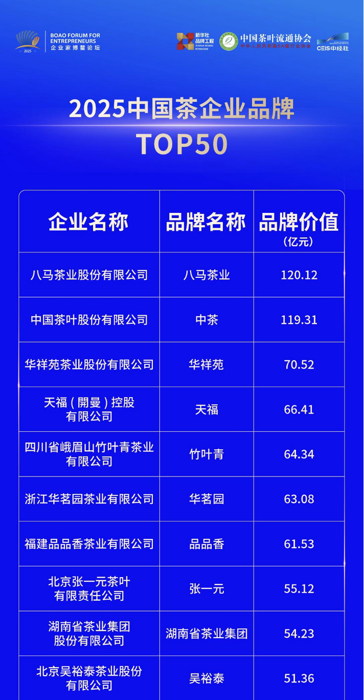 在隨后舉辦的中國茶品牌建設(shè)論壇上,八馬茶業(yè)榮膺由中國茶葉流通協(xié)會、新華社中國經(jīng)濟(jì)信息社共同評選的“2025中國茶企業(yè)品牌調(diào)查結(jié)果TOP50”第一名,同時斬獲“2025外國人喜愛的中國茶品牌”獎項。
