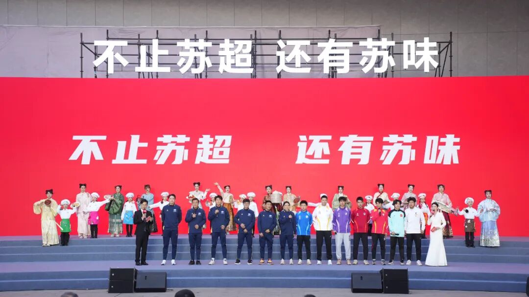 伴隨著開場舞《茉莉芬芳》的演繹,江蘇十三城的風味故事一一呈現。啟動儀式現場,“蘇超”球隊的隊員們化身“美食推薦官”,紛紛為家鄉(xiāng)美食打call。江蘇省作家協會副主席祁智、“蘇超”爆款熱梗代言人叨叨傅也前來助陣,從“蘇超”賽場的激情梗王,變身為“蘇味”的探索者。