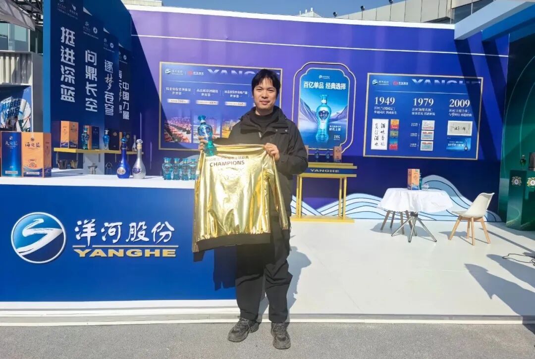 (啟動儀式現場,幸運觀眾獲得“蘇超”冠軍泰州隊教練周高萍簽名球衣)