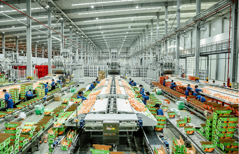 進(jìn)廠后,極致考驗(yàn)才真正開始。橙子要經(jīng)歷深度清洗、光學(xué)分選流水線、無損傷近紅外檢測、人工精選、自動(dòng)稱重、分選包裝、防偽包裝、稱重檢測八道工序,包括四大標(biāo)準(zhǔn)體系、34道作業(yè)流程、79類管控內(nèi)容和148項(xiàng)監(jiān)控細(xì)項(xiàng)。在這條自動(dòng)化生產(chǎn)線上,每個(gè)橙子會(huì)被拍攝150張高清照片,疤點(diǎn)面積被精確測算,再經(jīng)由感應(yīng)系統(tǒng)完成智能稱重與分級(jí),表皮有瑕疵的果子被送往榨汁產(chǎn)線,頂級(jí)優(yōu)質(zhì)果則被送往鮮果產(chǎn)線。