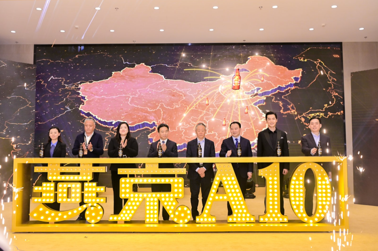 發(fā)布會(huì)最后,李欣、宋書玉、耿超、胡歌以及各方嘉賓共同登臺(tái)點(diǎn)亮“燕京A10”的字樣,這款醞釀三年的產(chǎn)品,正式走向市場(chǎng)。