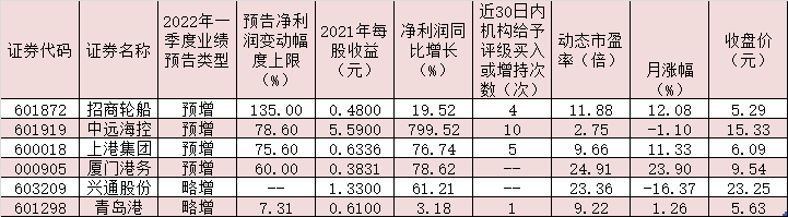 表:已披露2022年一季度業(yè)績預告且預喜的港口航運公司
