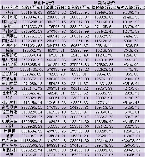 表:4月18日申萬(wàn)一級(jí)行業(yè)兩融交易情況: