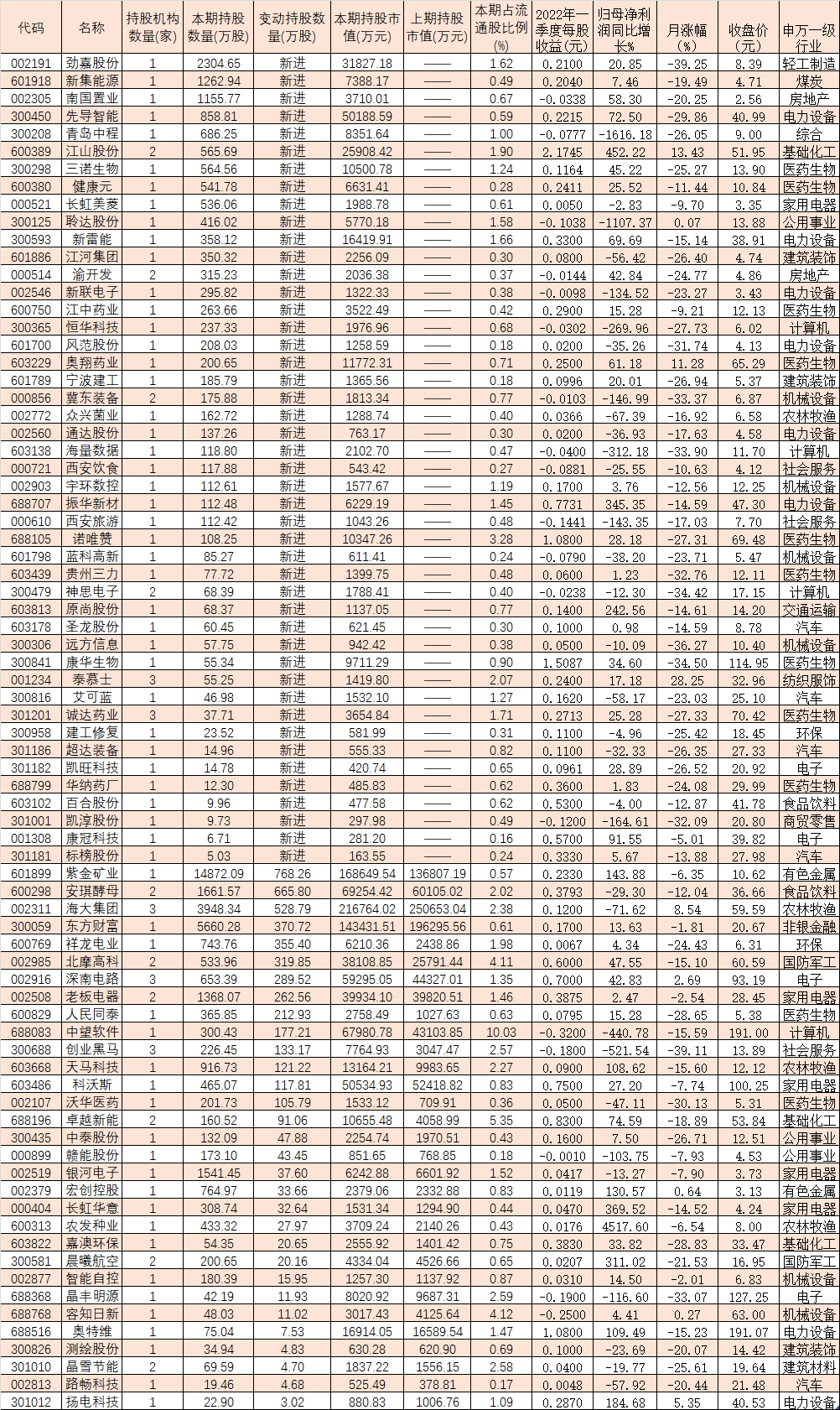 進一步梳理發(fā)現(xiàn),與去年年報數(shù)據(jù)相比,77只個股成為今年一季度QFII新進增持的重點品種,涉及27個申萬一級行業(yè),醫(yī)藥生物(11只)、電力設(shè)備(8只)、機械設(shè)備(6只)、汽車(5只)和家用電器(5只)等五行業(yè)今年一季度QFII新進增持個股數(shù)量居前。
