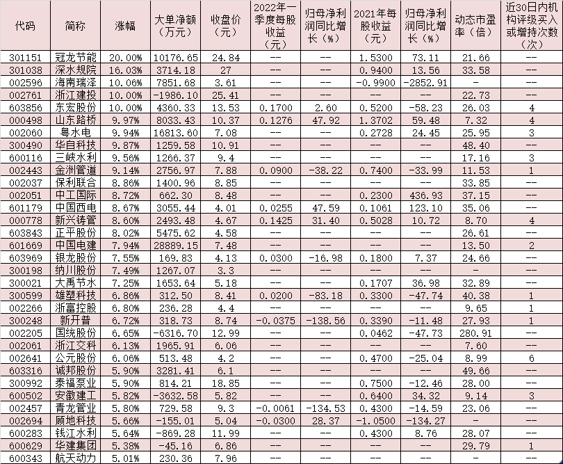 最近30日內(nèi),有機構(gòu)對于水利概念股表示看好,具體來看,有22只概念股獲機構(gòu)給予“買入”或“增持”等看好評級,其中,中國鐵建、中國交建、山鷹國際等3只概念股近期獲得看好次數(shù)均在10次及以上。