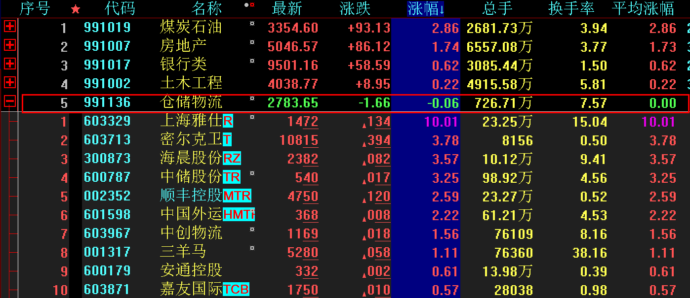 受此利好消息提振,4月28日,大智慧倉儲物流板塊盤中強勢拉升,截至收盤,雖沒能紅盤報收,但仍成為兩市中較為抗跌的板塊,微跌0.06%。個股方面,上海雅仕強勢漲停,密爾克衛(wèi)、海晨股份、中儲股份、順豐控股、中國外運等5只個股漲逾2%。而從資金方面來看,順豐控股、上海雅仕、海晨股份等3只個股均獲得超1200萬元大單資金凈流入。