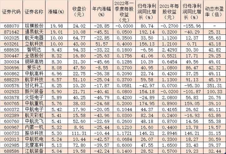 表:5月5日漲幅超5%的國(guó)防軍工股一覽