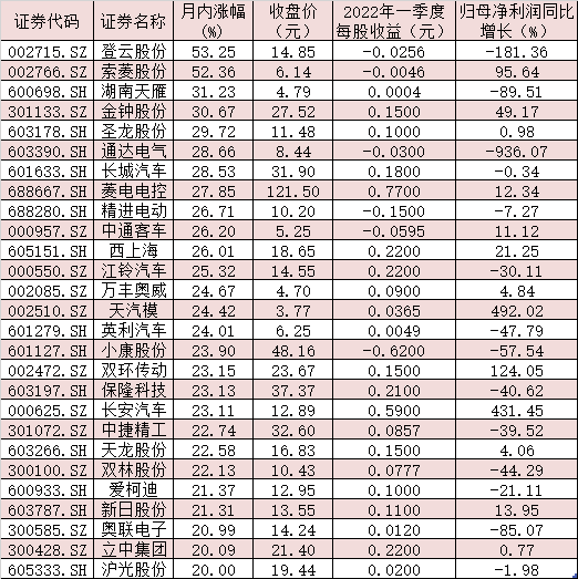 表:5月份以來(lái)漲幅在20%及以上的汽車股一覽