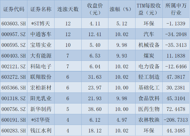 表:連續(xù)上漲5天且今日收盤漲停股一覽