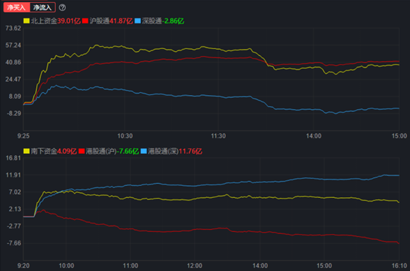 北向資金今日呈凈流入態(tài)勢,全天凈買入39.01億元,其中,滬股通凈買入41.87億元,深股通凈買入-2.86億元。