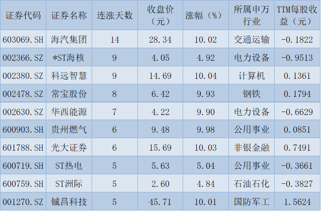海汽集團(tuán)14連陽(yáng)9日一字板