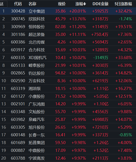 表:連續(xù)上漲5天且今日收盤(pán)漲停股一覽