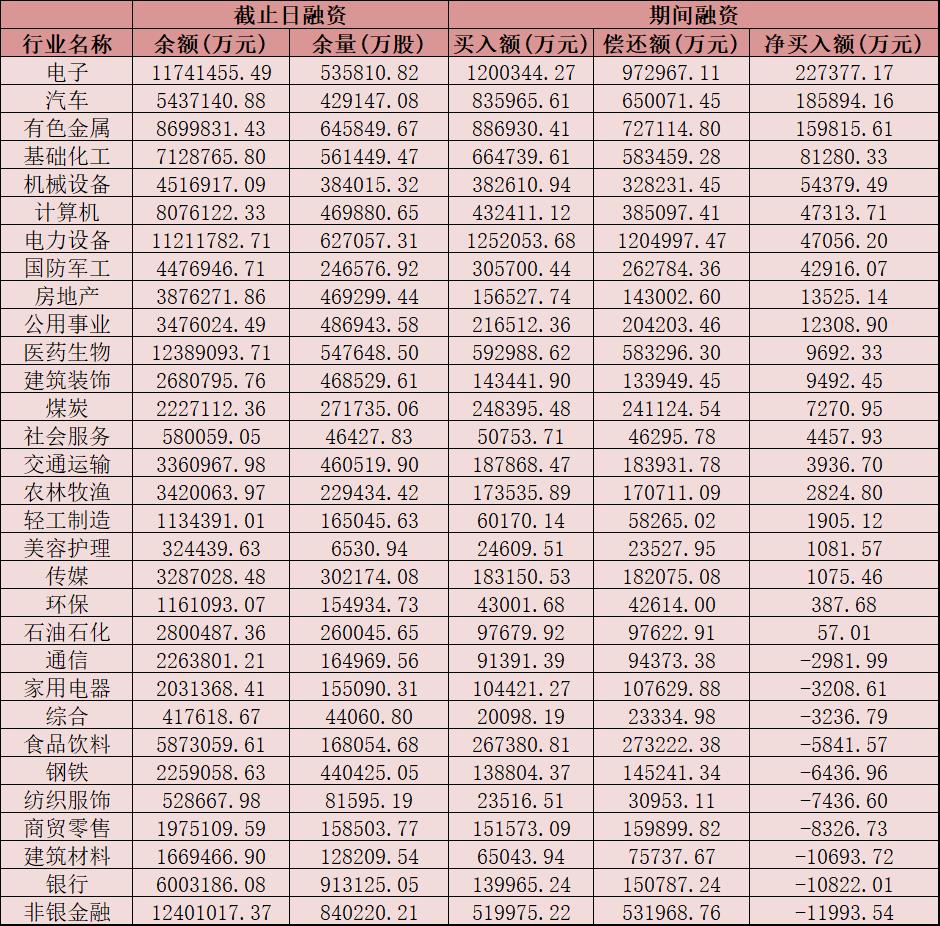 表:6月28日申萬一級行業(yè)兩融交易情況: