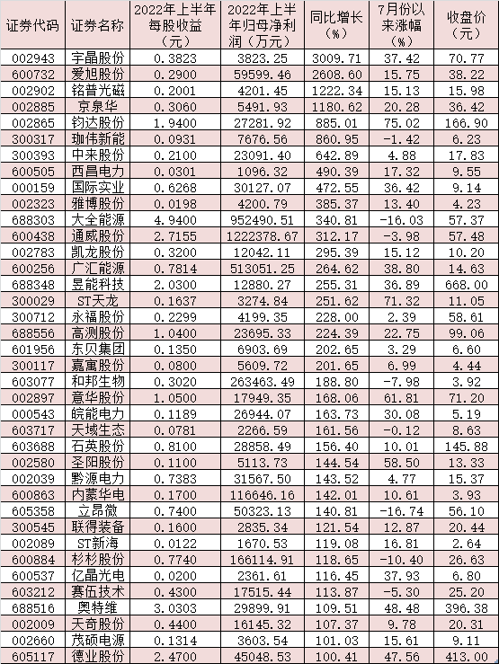 表:今年上半年歸母凈利潤同比增長超100%的光伏公司