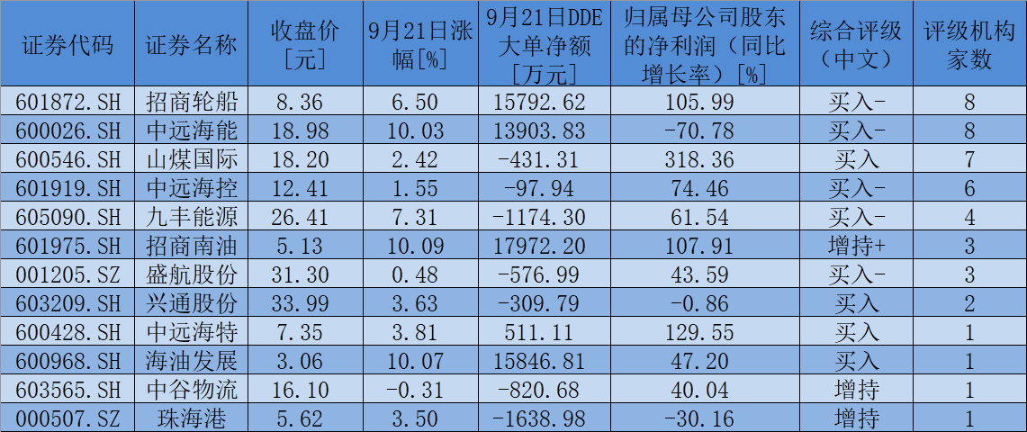 最近30日內(nèi),航運(yùn)板塊還有12只個股獲機(jī)構(gòu)給予“買入”或“增持”等看好評級。其中,包括招商輪船、中遠(yuǎn)海能、山煤國際、中遠(yuǎn)??氐?只個股均獲得5次以上機(jī)構(gòu)集中推薦。