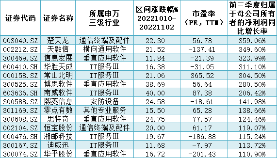 表:智慧政務(wù)板塊前三季度歸母凈利潤實現(xiàn)同比翻番公司一覽