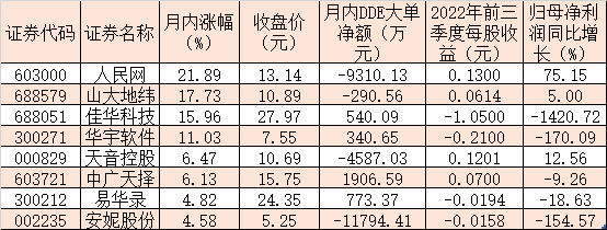 表:月內(nèi)累計(jì)漲幅超4%的數(shù)據(jù)確權(quán)概念股