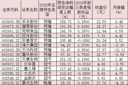表:已披露2022年業(yè)績預(yù)告且預(yù)喜的農(nóng)產(chǎn)品公司