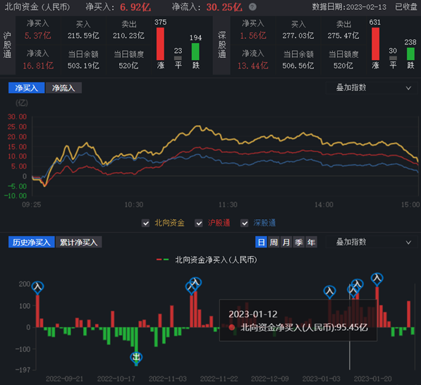 2月13日,A股三大指數(shù)震蕩上漲,成交放量,深市略強,北上資金凈買入,美容護理與食品飲料等申萬行業(yè)表現(xiàn)強勢。業(yè)內人士表示,上半年市場整體震蕩向上機會較大,改變春季行情的因素并未出現(xiàn),目前依然沒有變盤風險。