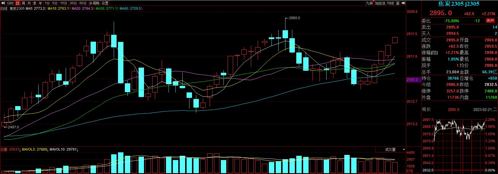 2月21日,煤炭期貨主力合約表現(xiàn)搶眼,“雙焦”期貨主力合約實現(xiàn)六連陽。具體來看,今日焦煤期貨主力合約連續(xù)第6個交易日上漲,該主力合約盤中最高上探至1976元/噸,截至收盤,漲幅達3.84%,報收1975元/噸。同時,焦炭期貨主力合約也持續(xù)活躍,2月21日該主力合約漲2.21%,日線實現(xiàn)六連陽,報收2895元/噸。