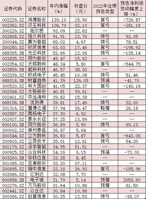 表:年內(nèi)累計漲幅超30%的數(shù)字經(jīng)濟概念股