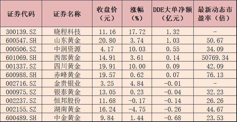 與此同時(shí),多數(shù)貴金屬概念股也獲得市場大單資金的青睞。3月14日,板塊內(nèi)有6只個(gè)股呈現(xiàn)大單資金凈流入態(tài)勢,合計(jì)凈流入額為3.20億元,其中,曉程科技、山東黃金、中潤資源獲大單資金凈買入額居前,均超5000萬元。