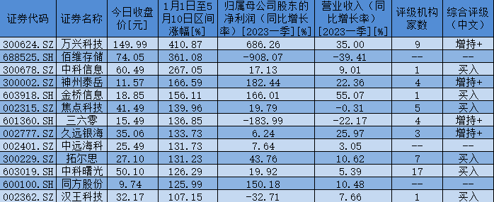 表:1月1日至5月10日,信創(chuàng)概念板塊期間累計(jì)漲幅超100%個(gè)股一覽