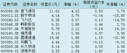 表:今日物流行業(yè)漲幅前十個(gè)股一覽