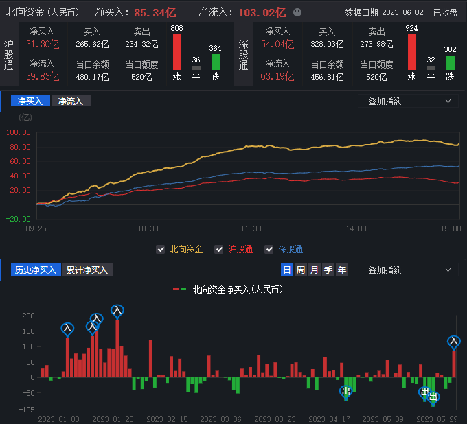 北上資金凈買入85.34億元