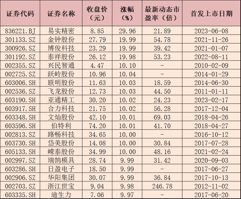 表:6月12日漲停的20只汽車(chē)零部件概念股一覽