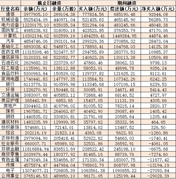 表:6月20日申萬(wàn)一級(jí)行業(yè)兩融交易情況:
