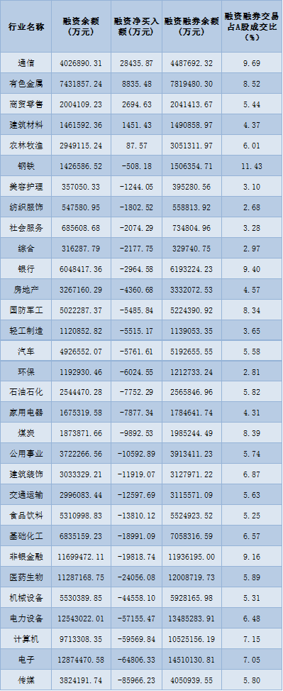 表:7月7日申萬(wàn)一級(jí)行業(yè)兩融交易情況
