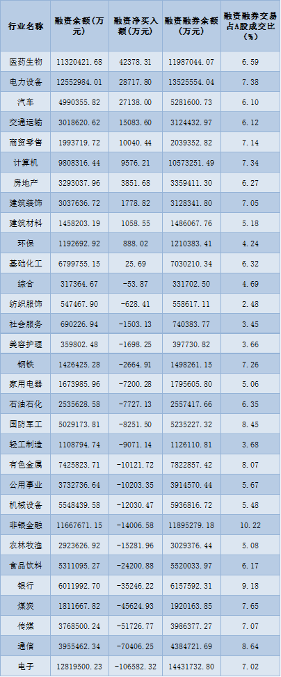 表:7月12日申萬一級行業(yè)兩融交易情況