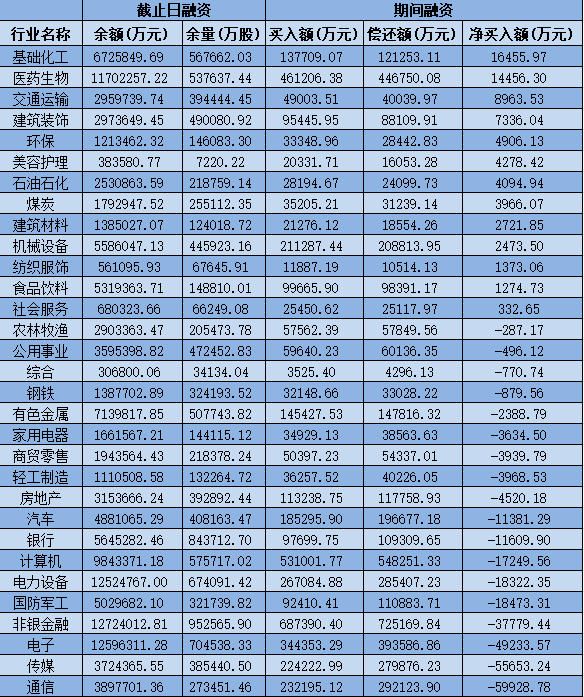 表:8月9日申萬一級行業(yè)兩融交易情況