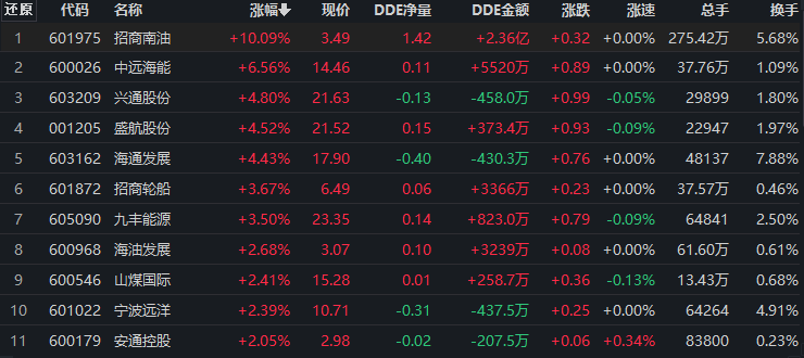 具體看,截至8月10日上午收盤,航運板塊漲幅居首,達2.03%,主力資金凈流入額為3.83億元。其中,招商南油漲停。