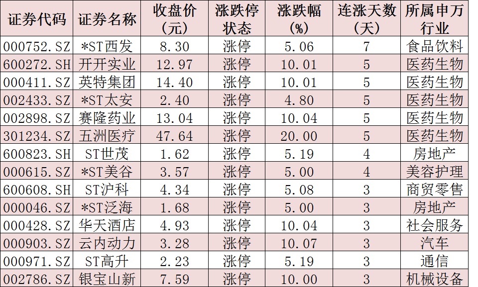 表:連續(xù)上漲3日且今日收盤漲停個股情況: