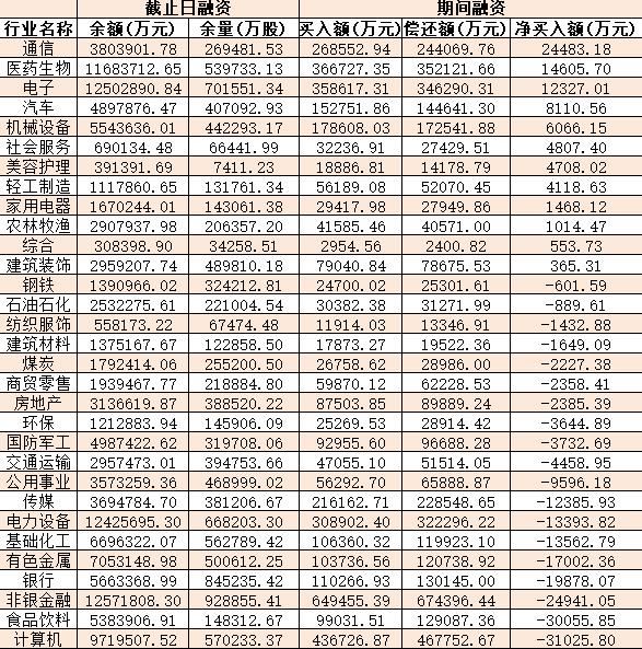 表:8月15日申萬(wàn)一級(jí)行業(yè)兩融交易情況