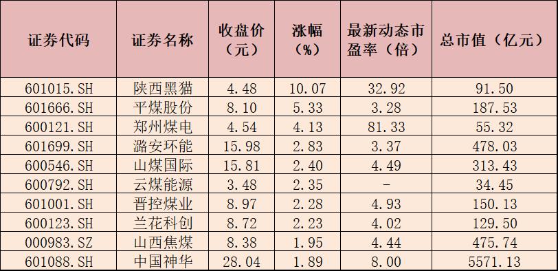表:8月23日煤炭開(kāi)采板塊內(nèi)漲幅居前十的個(gè)股一覽