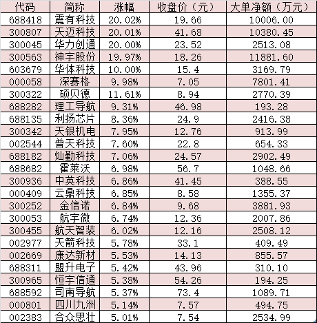 表:9月6日漲幅超5%的衛(wèi)星導(dǎo)航概念股