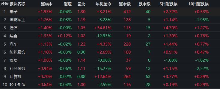電子板塊漲1.93%