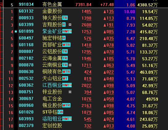 熱點(diǎn)三:有色金屬漲逾1%金徽股份漲停