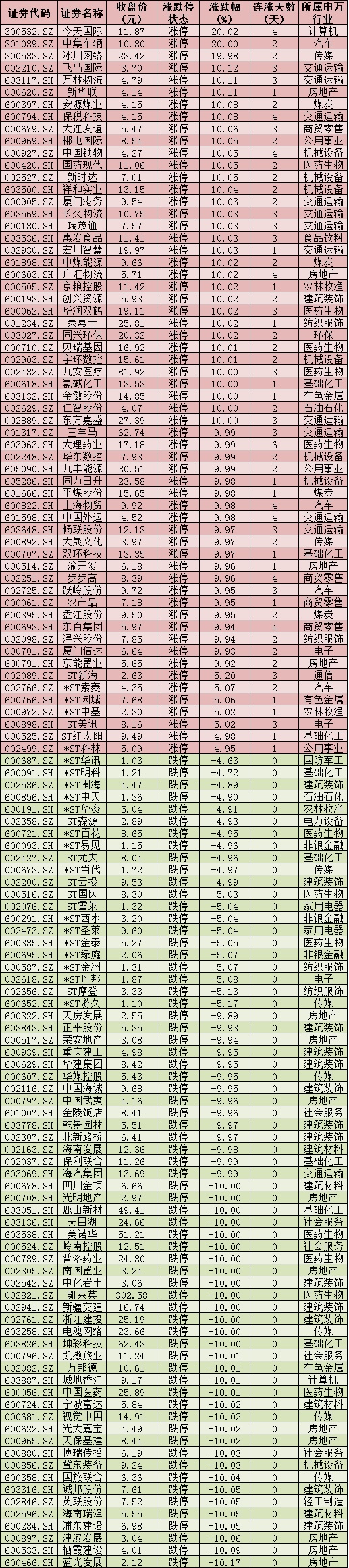 熱點(diǎn)方面,周三,具體來(lái)看,統(tǒng)一大市場(chǎng)板塊領(lǐng)漲,今天國(guó)際、中集車(chē)輛等13只個(gè)股集體漲停;物流、煤炭開(kāi)采加工、金屬鋅、金屬鉛、智能物流等板塊表現(xiàn)活躍;NFT概念板塊領(lǐng)跌,數(shù)字貨幣、裝配式建筑、云游戲等板塊跌幅居前。今日,軍信股份登陸創(chuàng)業(yè)板,跌10.17%;金道科技登陸創(chuàng)業(yè)板,漲18.62%。