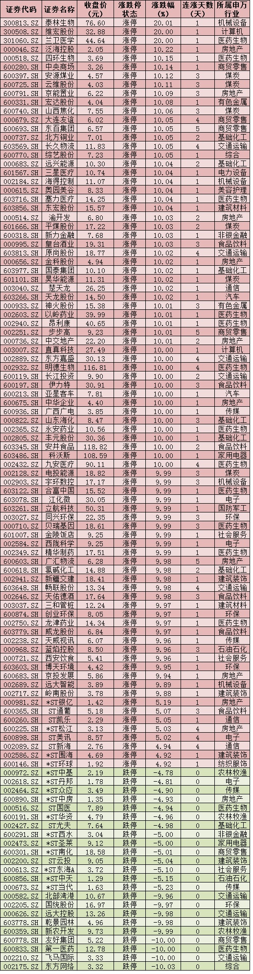 熱點(diǎn)方面,周四,煤炭開采加工板塊領(lǐng)漲,安源煤業(yè)、山西焦化等多只個(gè)股漲停;新冠檢測板塊表現(xiàn)強(qiáng)勢,泰林生物、蘭衛(wèi)醫(yī)學(xué)等8只個(gè)股集體漲停;飲料制造、酒店及餐飲、基因測序、白酒概念等板塊表現(xiàn)活躍;景點(diǎn)及旅游板塊領(lǐng)跌,PVDF概念、港口航運(yùn)、互聯(lián)網(wǎng)電商、培育鉆石等板塊跌幅居前。