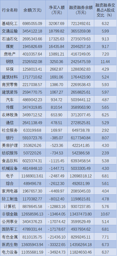 表:4月20日申萬(wàn)一級(jí)行業(yè)兩融交易情況: