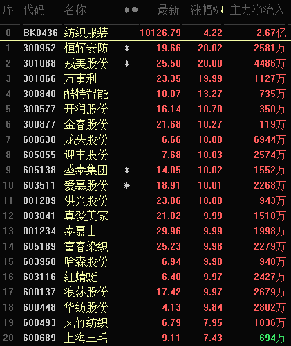 具體來看,截至4月22日11:30,紡織服裝行業(yè)漲幅達(dá)4.22%。