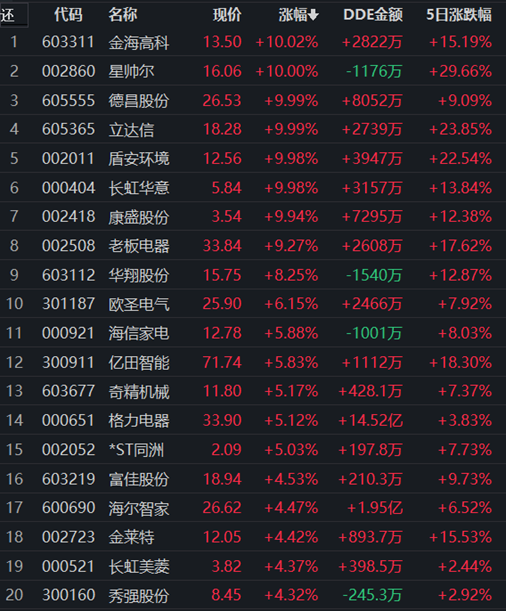標(biāo)的方面,渤海證券建議關(guān)注美的集團(tuán)(000333)、海爾智家(600690)、格力電器(000651)、北鼎股份(300824)、浙江美大(002677)、億田智能(300911)、火星人(300894)和新寶股份(002705)。