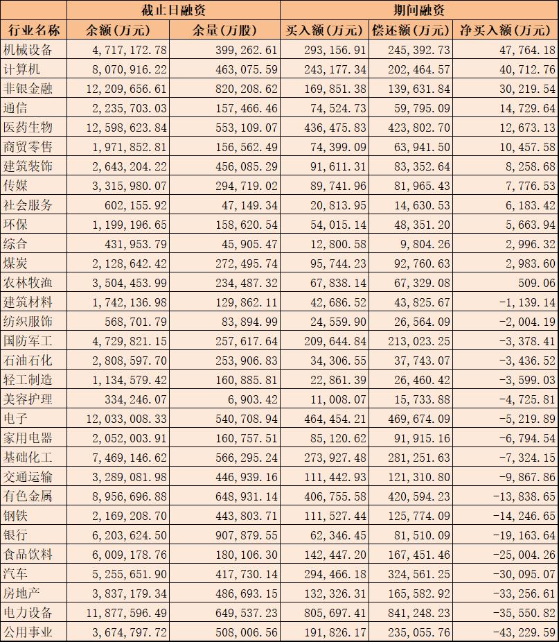 表:7月25日申萬一級行業(yè)兩融交易情況: