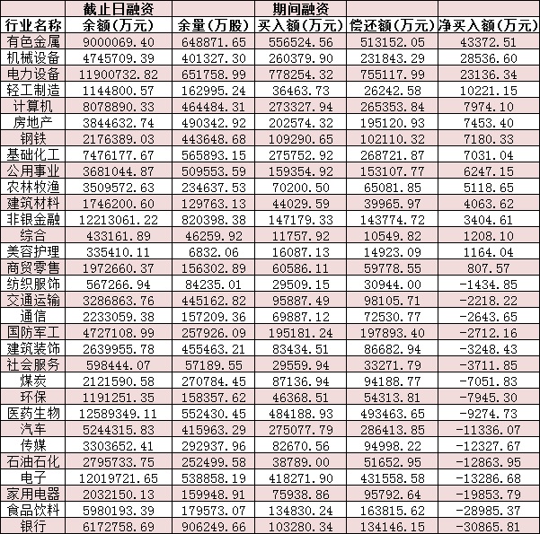 表:7月26日申萬一級(jí)行業(yè)兩融交易情況:
